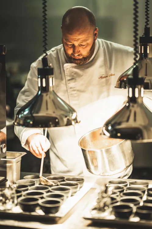 Formé à Bruxelles au sein de maisons prestigieuses, Michaël Albert évolue auprès de chefs doublement étoilés Michelin. Son apprentissage rigoureux forge une identité culinaire fondée sur la précision et le respect absolu du produit.